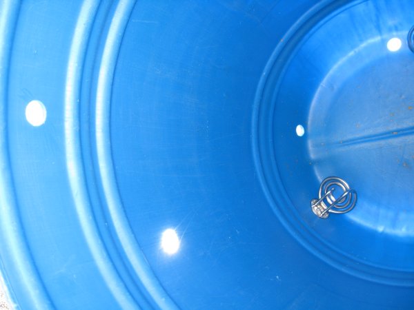 Tre 2000W värme-element har monterats i HLT:n. Observera att för att få detta att fungera så måste man ha tillgång till 3-fas, eftersom att strömmen (förenklad modell) blir I = P/U dvs 6000W/230V = 26 A så det går absolut inte att köra på en fas. Elementen kommer från billiga vattenkokare. Om du skulle försöka dig på något liknande, passa då på och köp dig en 39 mm hålsåg för borrmaskinen.