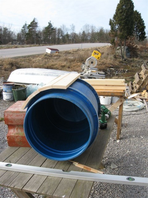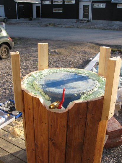 Använde sen lite billigare Byggmax PU-skum för utfyllnadsdelar, som här i botten av tunnan.