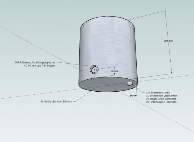 Tanken var att köpa ett begagnat rostfritt expansionskärl och sen fixa till det till att bli en vörtkokare. Då mina svetskunskaper begränsar sig till enstaka svetsningar då och då så kändes uppgiften ganska svår att ta sig an, så jag valte alternativet att skicka iväg min skiss till en svetsare (som för övrigt tillverkar rostfria expansionskärl).