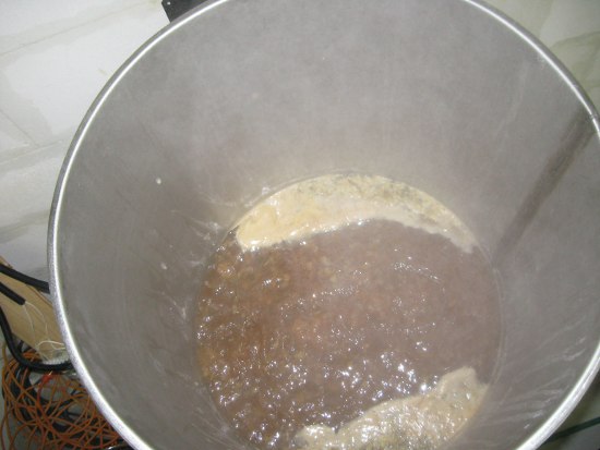 Med den längd på värmeslingan (3x2kW) som jag valde så blir kokningen bra och centrerad. Skum från kokningen hamnar på var sida om slingan vilket gör det lätt att samla upp och slänga.